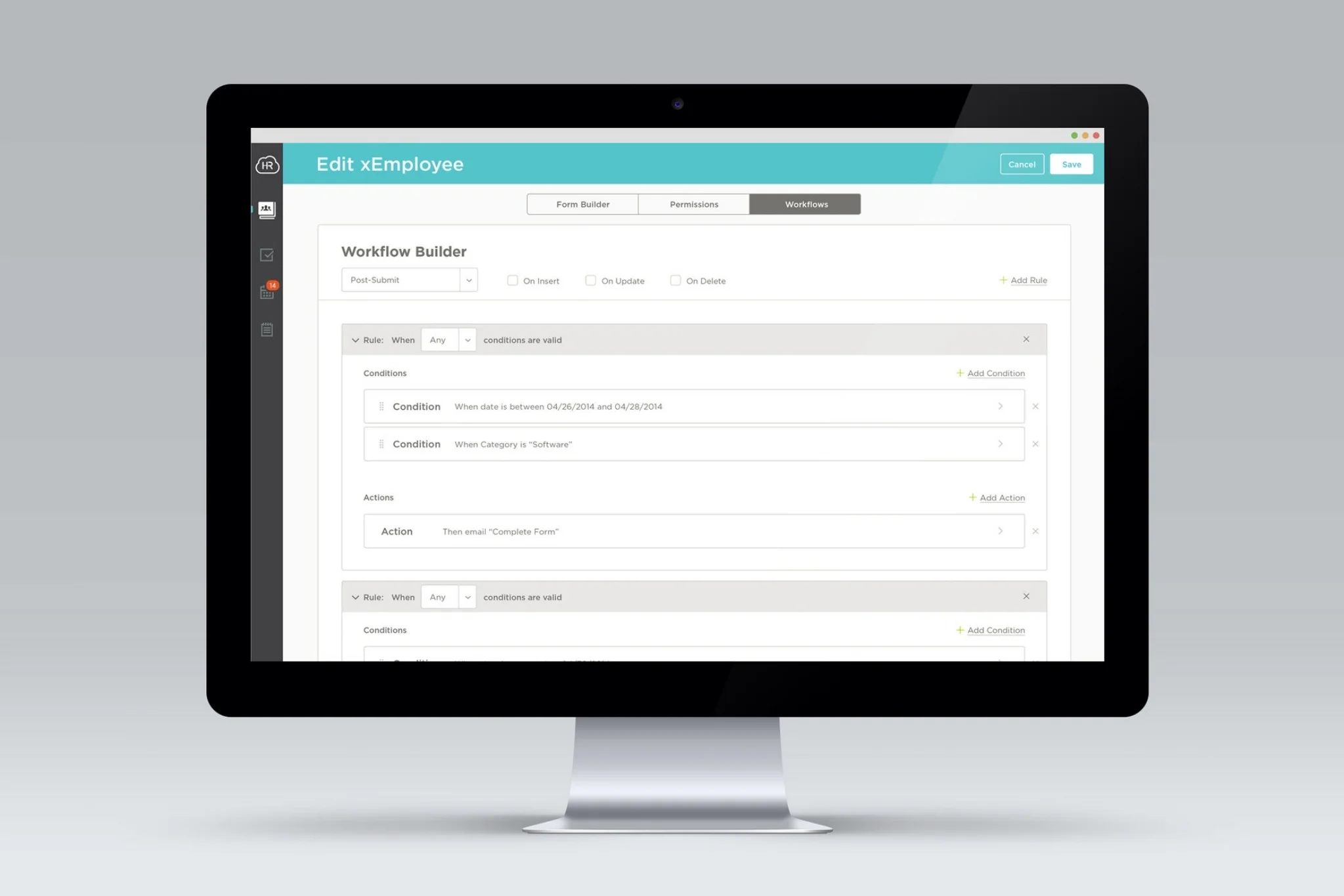 The form builder and it's workflows used to be used entirely by our internal customer support team. Forms and workflows were being built by an internal team at HR Cloud and we needed to create a design that is simple enough for customers to create their own forms with contiguous rules. The existing system was too confusing for any users that don't understand any code languages. The form builder lacked the complexity HR administrators needed. Designs had to be presented in colloquial terms for easier understanding.