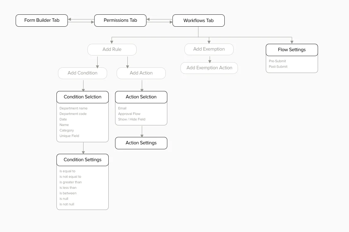 By using the product internally at first, the company as a whole provided very useful feedback and user data to help us iterate better versions of the form builder and workflows. By breaking up the process into digestible chunks, we reduced information overload which allowed us to open this feature up to use by our customers.